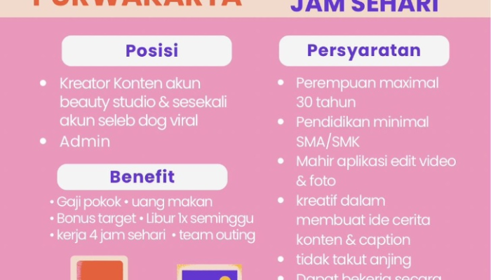 Lowongan Kerja Part Time Content Creator & Admin di Beauty Studio Purwakarta 2026