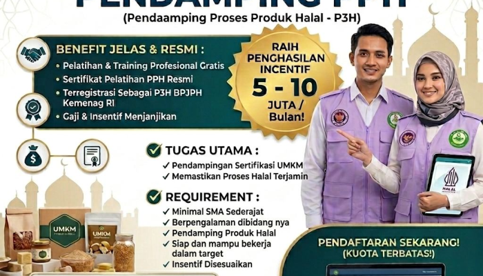Kementerian Agama RI kembali membuka kesempatan bagi Anda untuk bergabung dalam program Pendamping Proses Produk Halal (P3H). Lowongan kerja ini dikhususkan bagi Anda yang berdomisili atau bersedia ditempatkan di wilayah Cianjur untuk membantu UMKM lokal meraih sertifikasi halal.