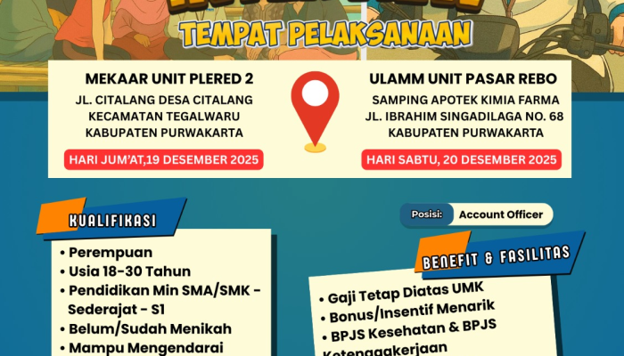 Apakah Anda wanita muda yang energik dan ingin berkarir di lembaga keuangan plat merah? PT Permodalan Nasional Madani (PNM) melalui unit bisnis Mekaar dan ULaMM kembali membuka kesempatan karir melalui jalur Walk Interview. Ini adalah peluang emas bagi Anda untuk bergabung sebagai Account Officer dan berkontribusi memberdayakan ekonomi masyarakat di wilayah Jawa Barat.
