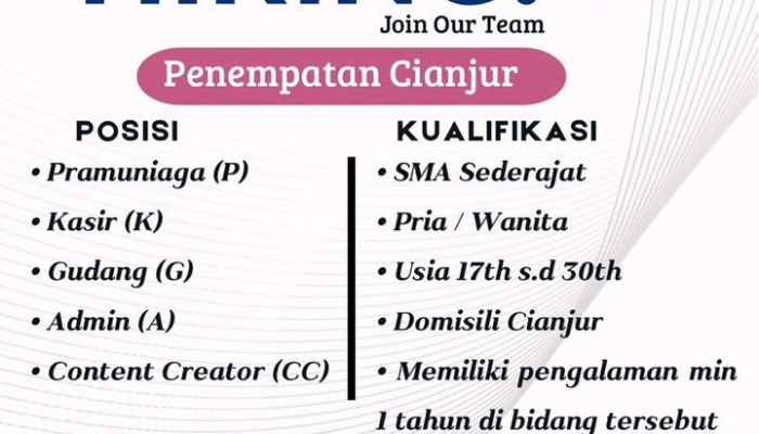 • Domisili: Diutamakan berdomisili di wilayah Cianjur.