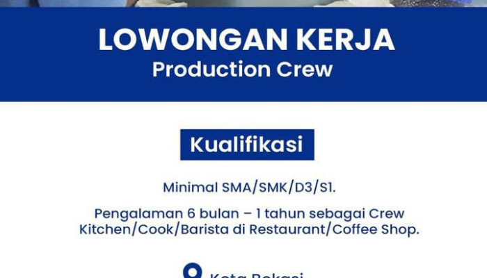 Apakah Anda seorang yang cekatan, punya pengalaman di dapur restoran atau kafe, dan ingin berkarir di industri manufaktur makanan? PT Foodina Bersama Ixora (Dara & Dimsum) membuka peluang karir bagi Anda sebagai Production Crew. Jika Anda berdomisili di Kota Bekasi, ini adalah kesempatan yang tepat untuk Anda!