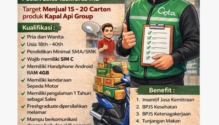 - Untuk Posisi Sales Taskforce MD: Kirim CV ke email recruitment@ciptamitra.co.id atau daftar melalui website www.ciptamitra.co.id/id/jobs