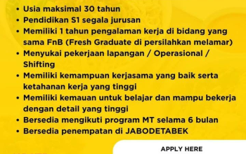 - Pengalaman: Terbuka untuk fresh graduate; pengalaman di bidang atau industri serupa akan lebih disukai.