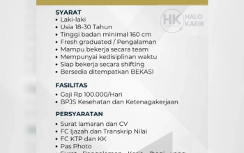 - Bekerja dalam sistem shift (hingga 3 shift) guna mendukung kelancaran operasional pabrik.