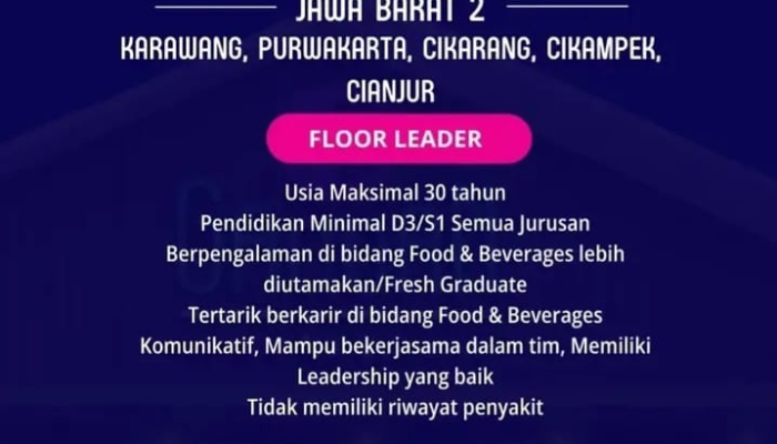 - Berpengalaman di bidang Food & Beverages lebih diutamakan (Fresh Graduate dipersilakan melamar)
