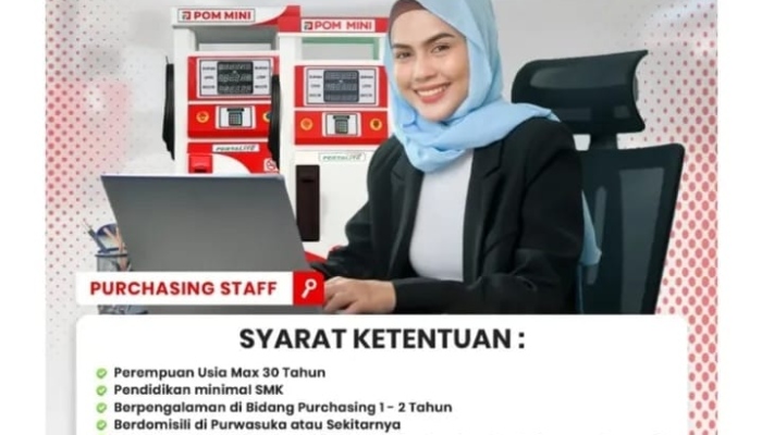 Mencari peluang karir di bidang purchasing? Central Pomini membuka kesempatan emas bagi Anda untuk bergabung sebagai Purchasing Staff. Jika Anda seorang wanita yang teliti, jujur, berpengalaman, dan berdomisili di Purwakarta, ini adalah saat yang tepat untuk menunjukkan potensi terbaik Anda. Bergabunglah dengan kami dan kembangkan karir profesional Anda di lingkungan kerja yang dinamis.