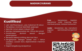 - Diutamakan berdomisili di wilayah Kecamatan Subang dan sekitarnya.