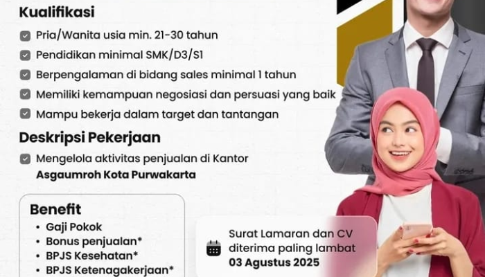 Kabar baik bagi kamu yang sedang mencari pekerjaan di bidang administrasi penjualan! AsgaUmroh Cabang Purwakarta sedang membuka lowongan untuk posisi Sales Admin dengan berbagai benefit menarik termasuk bonus penjualan hingga kesempatan Umroh gratis!