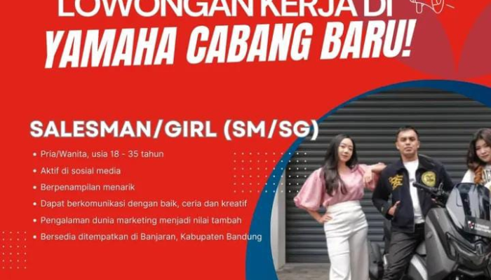 Bergabung dengan keluarga besar Yamaha berarti Anda akan bekerja di lingkungan yang dinamis dengan produk-produk motor unggulan kelas dunia. Jika Anda mencari karir dengan potensi penghasilan menarik dan jaringan luas di area Kabupaten Bandung, inilah saat yang tepat untuk melamar!.