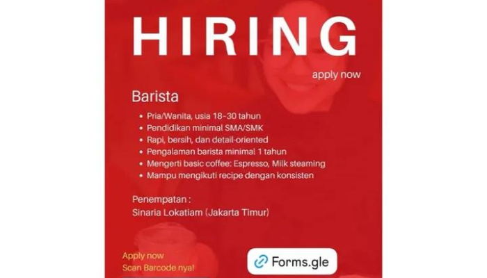 - Barista: Minimal 1 tahun sebagai Barista.