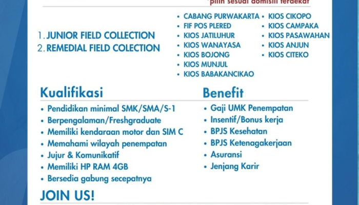 - Remedial Officer / Staf Penagihan: Bertanggung jawab dalam mengelola dan melakukan penagihan kepada nasabah guna memastikan kelancaran arus kas perusahaan.