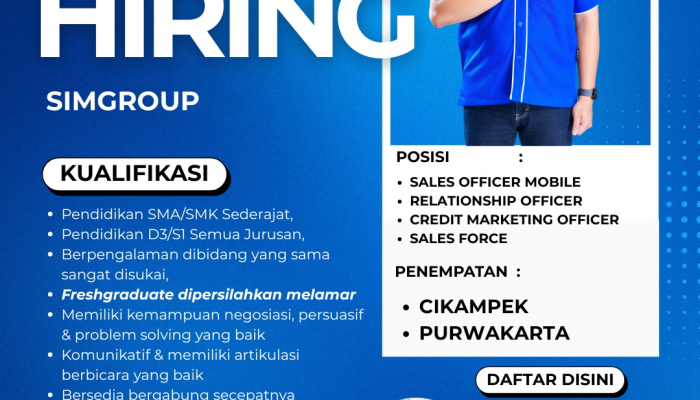 Saat ini, SIMGroup membuka beberapa posisi kunci untuk mendukung operasional di wilayah Jawa Barat: