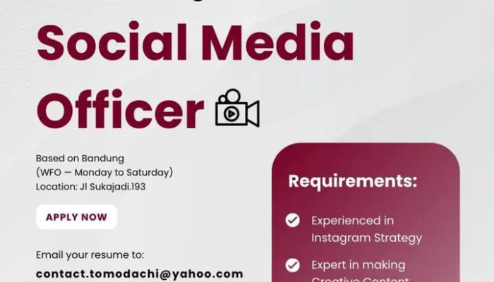 Apakah Anda seorang profesional media sosial yang terampil, ahli dalam strategi Instagram, dan punya passion besar terhadap dunia wedding dan fashion? Tomodachi Weddings membuka kesempatan karir yang menarik bagi Anda untuk bergabung sebagai Social Media Officer. Jika Anda mencari loker Social Media Officer terbaru di Bandung dan siap bekerja full-time dari Senin hingga Sabtu, ini adalah waktu yang tepat untuk mengirimkan resume Anda!