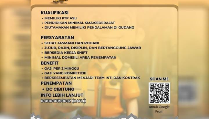 Untuk melamar, silakan scan QR Code pada poster untuk mengisi formulir pendaftaran.