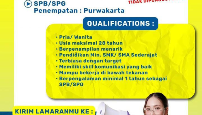 - Memiliki pengalaman minimal 1 tahun sebagai SPB/SPG.