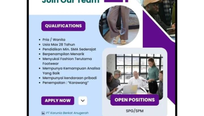 Kesempatan ini sangat terbuka bagi Anda yang ingin membangun karir di bidang retail dan pemasaran. Jika Anda memenuhi kriteria dan siap memberikan pelayanan terbaik kepada pelanggan di wilayah Karawang, inilah saatnya untuk mengirimkan lamaran Anda!