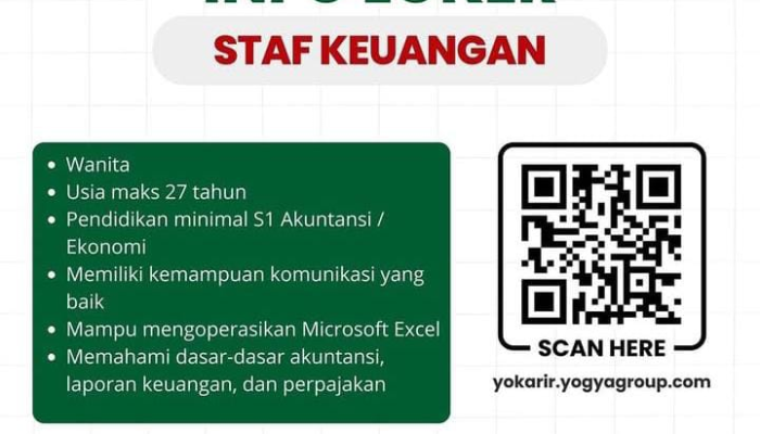 - Link Pendaftaran: Buka laman yokarir.yogyagroup.com atau Scan QR Code yang tertera pada poster lowongan kerja.
