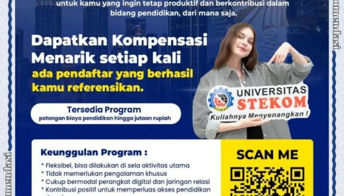 Mencari peluang kerja yang fleksibel dan bisa dilakukan dari mana saja? Universitas STEKOM membuka kesempatan emas bagi Anda untuk menjadi Staff Freelance melalui program kemitraan resmi. Jika Anda adalah individu yang produktif dan ingin berkontribusi di bidang pendidikan, ini adalah kesempatan yang tepat untuk Anda. Selain kompensasi menarik, Anda juga berkesempatan mendapatkan potongan biaya pendidikan hingga jutaan rupiah.