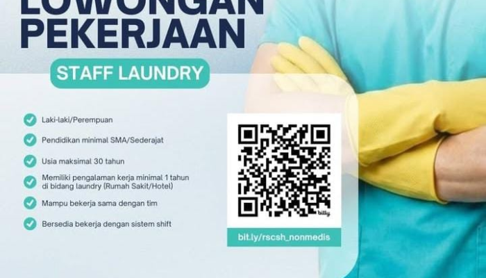 Apakah Anda pribadi yang cekatan, disiplin, dan ingin berkontribusi di dunia kesehatan? Rumah Sakit Citra Sari Husada (RSCSH) sedang membuka kesempatan karir bagi talenta berbakat untuk mengisi posisi Staff Laundry. Bergabunglah bersama tim medis profesional kami dan jadilah bagian dari institusi kesehatan yang berkomitmen memberikan pelayanan terbaik bagi masyarakat.