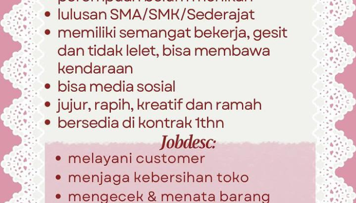 Loker Purwakarta 2026 – Apakah Anda seorang wanita yang kreatif, komunikatif, dan sedang mencari peluang karier di bidang kecantikan atau seni merangkai bunga? Saat ini, Beauty House by Salma dan Berbunga Florist membuka kesempatan bergabung bagi talenta muda berbakat untuk mengisi posisi strategis di tim mereka.