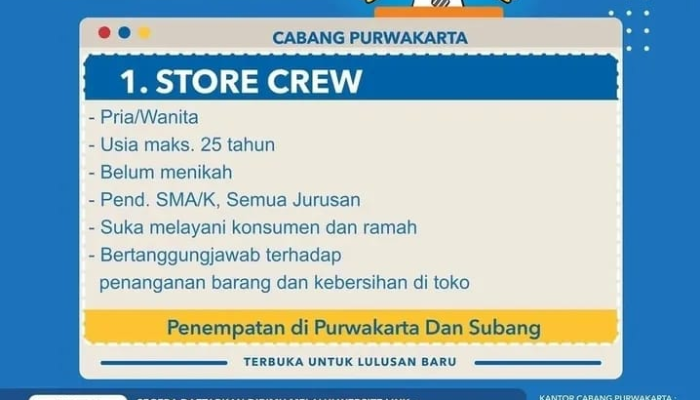 Indomaret Group melalui PT. Indomarco Prismatama membuka lowongan untuk posisi Store Crew di cabang Purwakarta.
