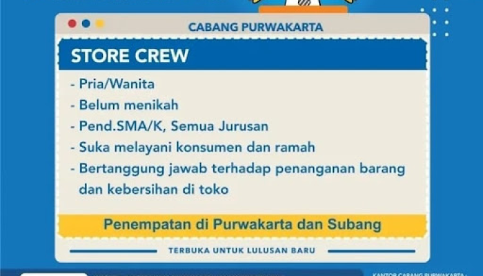 Apakah Anda seorang lulusan baru yang bersemangat untuk memulai karir di industri ritel? PT Indomarco Prismatama (Indomaret Group) membuka kesempatan emas untuk posisi Store Crew di cabang Purwakarta dan Subang. Ini adalah peluang terbaik bagi Anda yang ramah, bertanggung jawab, dan suka melayani konsumen untuk bergabung dengan salah satu jaringan minimarket terbesar di Indonesia.