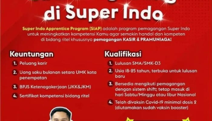 Super Indo membuka program pemagangan yang dinamakan Super Indo Apprentice Program (SIAP) untuk posisi Kasir & Pramuniaga. Program ini bertujuan untuk meningkatkan kompetensi di bidang retail.