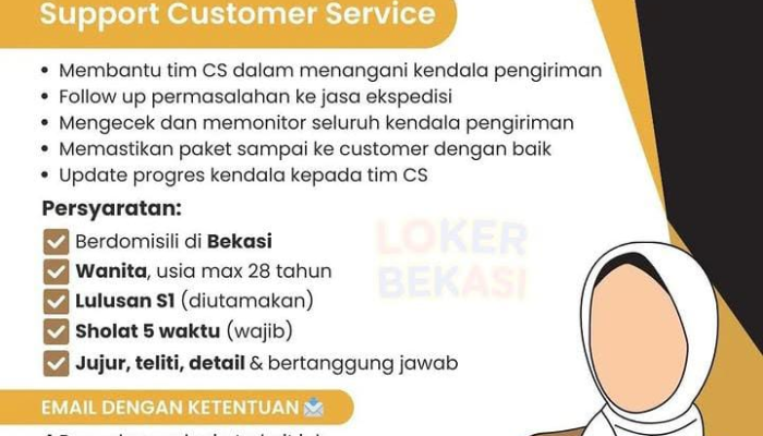 Apakah Anda seorang wanita profesional yang teliti, berdomisili di Bekasi, dan ingin membangun karir di lingkungan yang religius serta produktif? Pustaka Islam Bekasi sedang membuka kesempatan emas bagi Anda untuk bergabung sebagai Support Customer Service.
