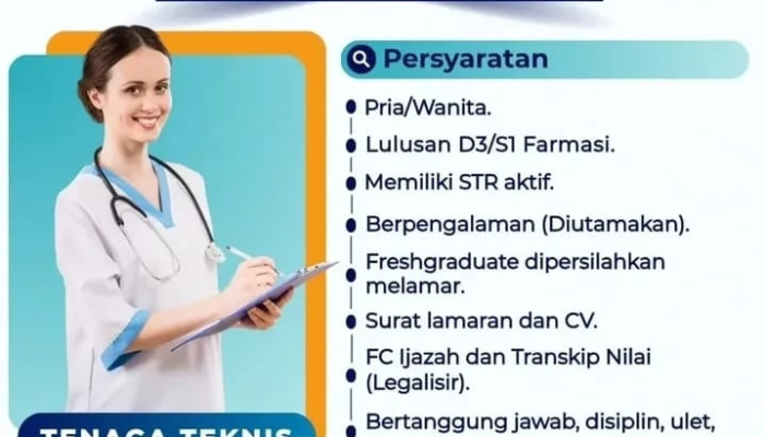 Rayhan Hospital, rumah sakit modern di wilayah Subang, Jawa Barat, kembali membuka kesempatan bergabung sebagai Tenaga Teknis Kefarmasian (TTK).