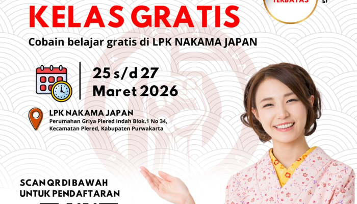 Bagi Anda yang ingin mengikuti kelas gratis atau berkonsultasi mengenai keberangkatan ke Jepang, silakan hubungi kami melalui: