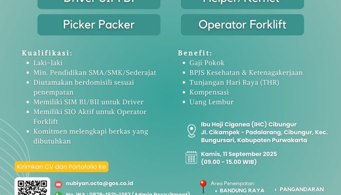 Walk-in Interview Driver, Helper, Picker Packer, Operator Forklift – Ben Talent Center Purwakarta